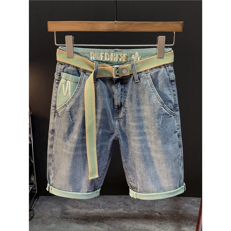 星空柄デニムショートパンツメンズ夏薄手5点パンツ2052新作トレンドブランドストレートルーズカジュアルミッドパンツ
