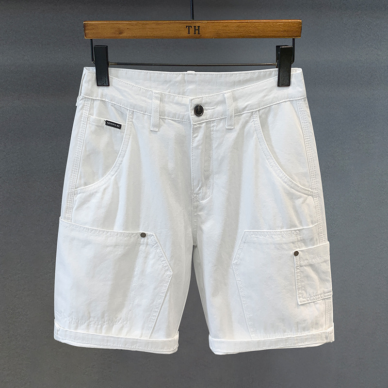 高級トレンドブランド白デニムショートパンツメンズ夏新作ルーズストレート5点パンツトレンドカジュアルミッドパンツ