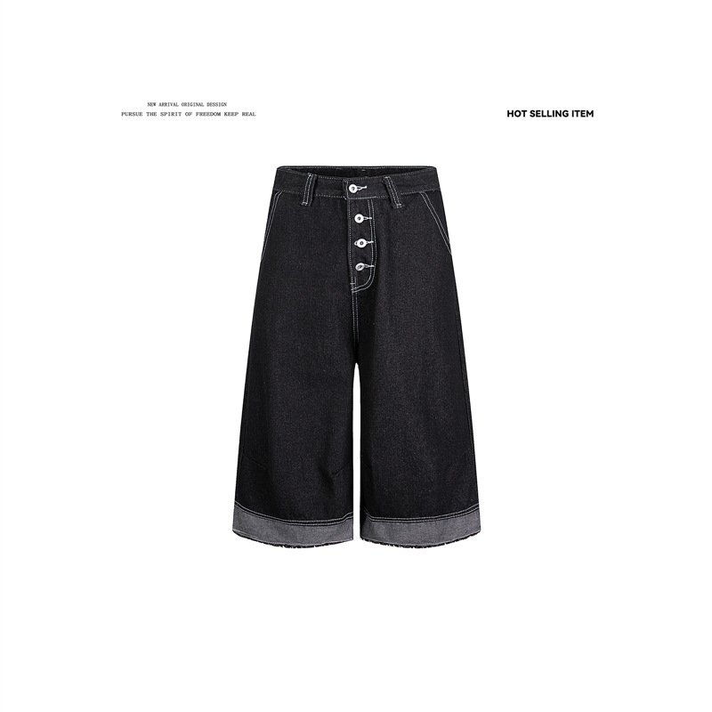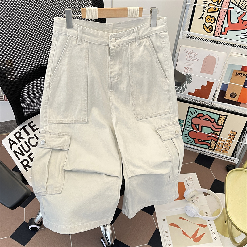 アメリカンレトロボタンクロップドジーンズメンズ夏トレンディブランドニッチデザインルーズカジュアルカーゴショーツ