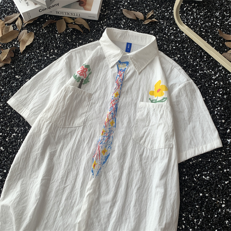 グラフィティネクタイプリント半袖シャツメンズ夏アメリカンストリートカップル多用途ハイエンドルーズカジュアルジャケット