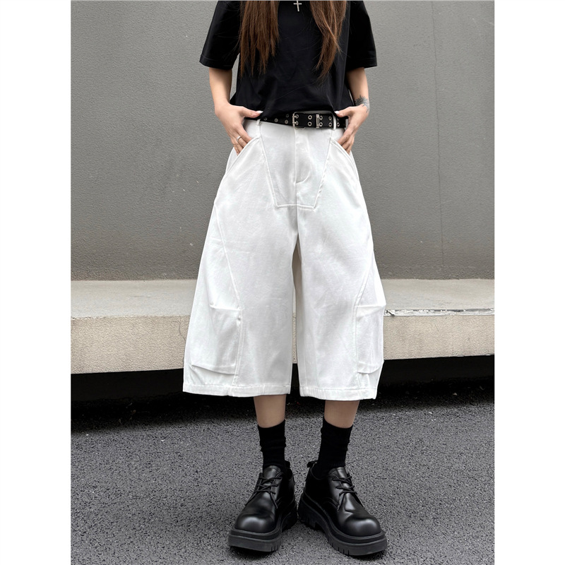 アメリカンシンプルな七分カーブカジュアルパンツ、男性と女性用、夏用ルーズストレートカーブデコンストラクト多用途ワイドレッグオーバーオール