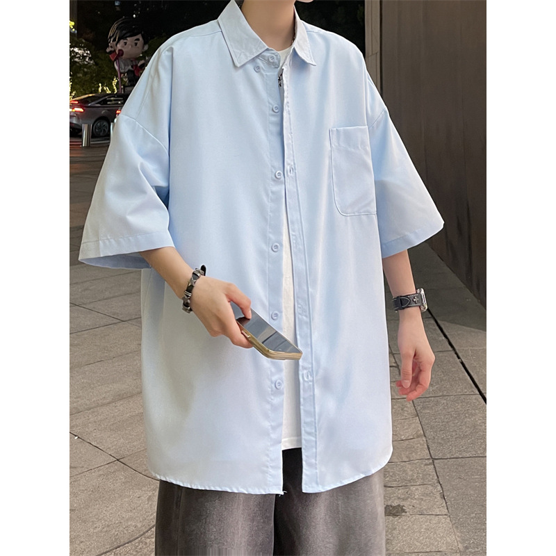 夏無地シンプル半袖シャツメンズ日本レトロルーズカジュアルティーンエイジャー通勤多用途シャツジャケット