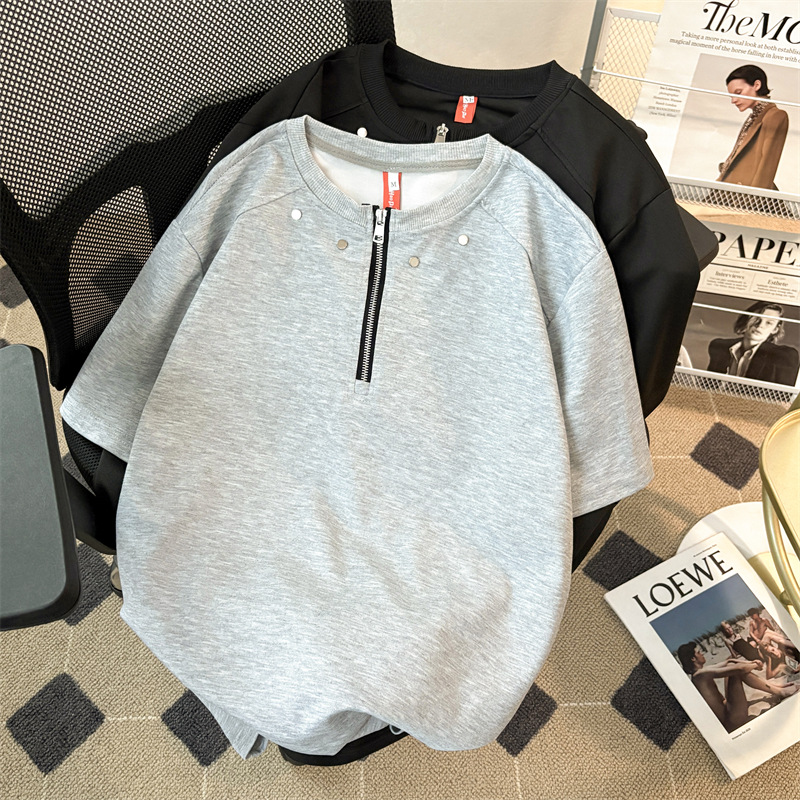 アメリカンレトロハーフジップ半袖Tシャツメンズ夏クリーンフィットルーズカジュアルハンサム半袖Tシャツトップ