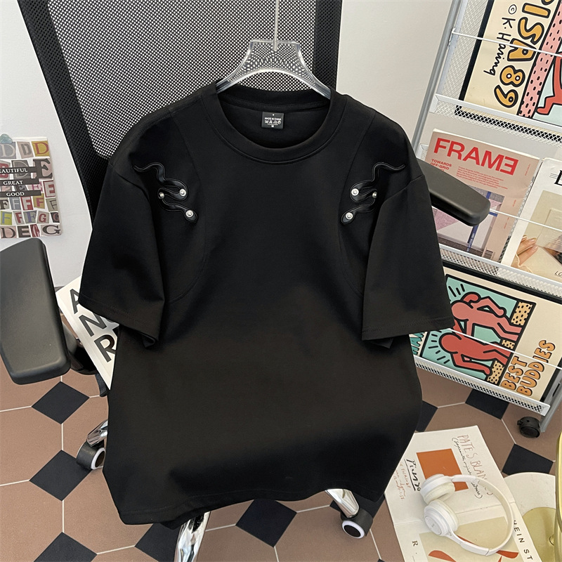 スネークプリントリベット半袖Tシャツメンズ夏アメリカンクリーンフィットトレンディブランドハンサムデコンストラクト半袖ルーズトップ