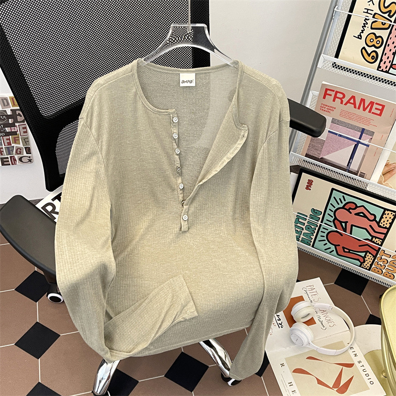 夏薄いピットストリップ長袖 Tシャツメンズアメリカンレトロルーズカジュアルレイジースタイルハーフオープンカラーティーシャツ