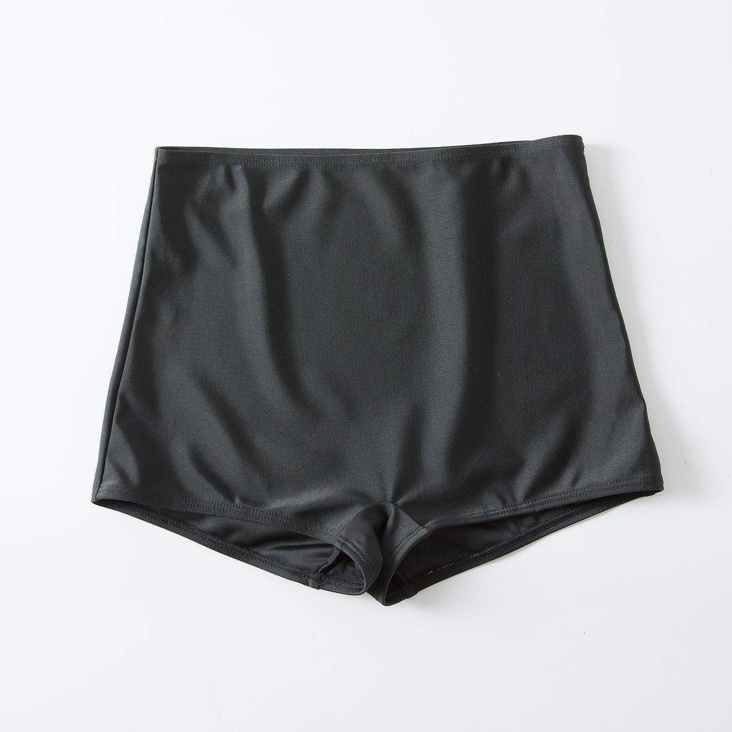 女性用セパレート水泳パンツ、フラットアングル露出防止、黒、コンサバティブ、スリム、ハイウエスト、お腹カバー、ボクサーブリーフ、女性用ボトムス水着