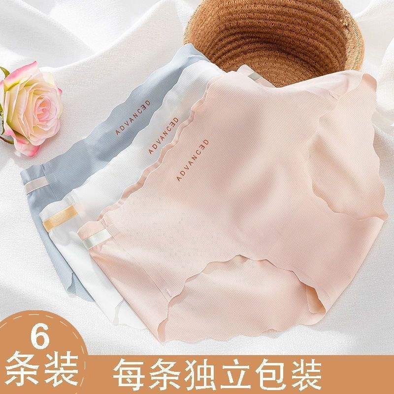 アイスシルクシームレス女子学生下着女性の夏薄い通気性股間ミッドローウエスト三角ショーツ
