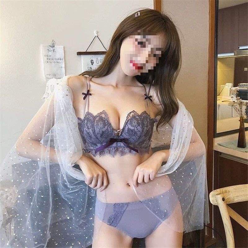 ヨーロッパとアメリカのフレンチセクシーな薄い綿三角まつげレース下着スチールリング小胸プッシュアップブラセット
