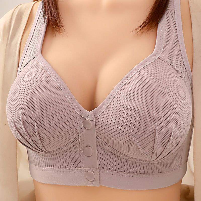 フロントボタンプッシュアップたるみ防止ブラジャー中高年向けノンワイヤープッシュアップブラカップフロントボタンレディースブラジャー