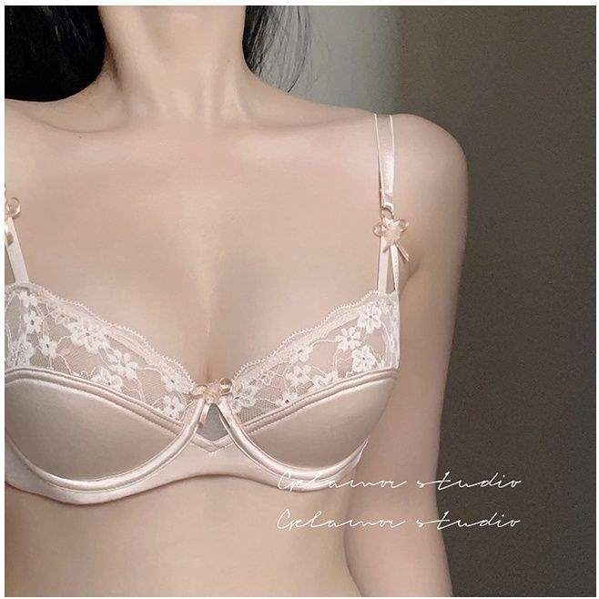 胸が大きい女性向けの薄い下着、胸が小さく見える、フレンチハーフカップセクシーレース胸縮小プッシュアップたるみ防止ブラセット