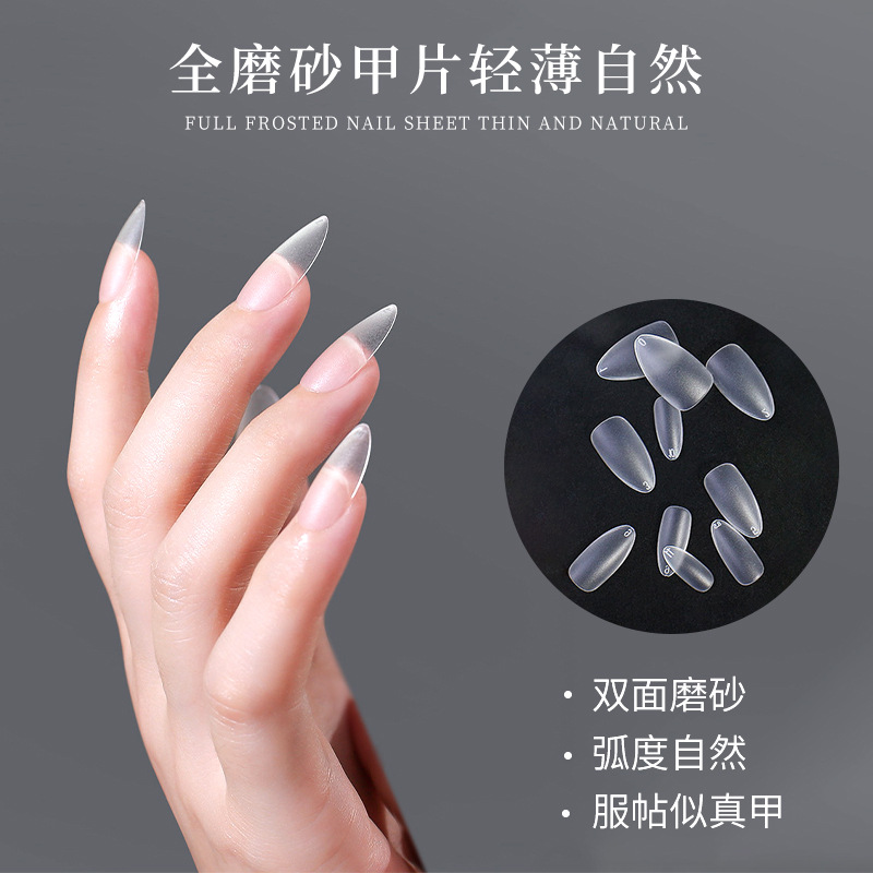 ネイルアート超薄無痕甲片透明艶消しアーモンド水滴半貼り全貼り延長手作り甲甲片