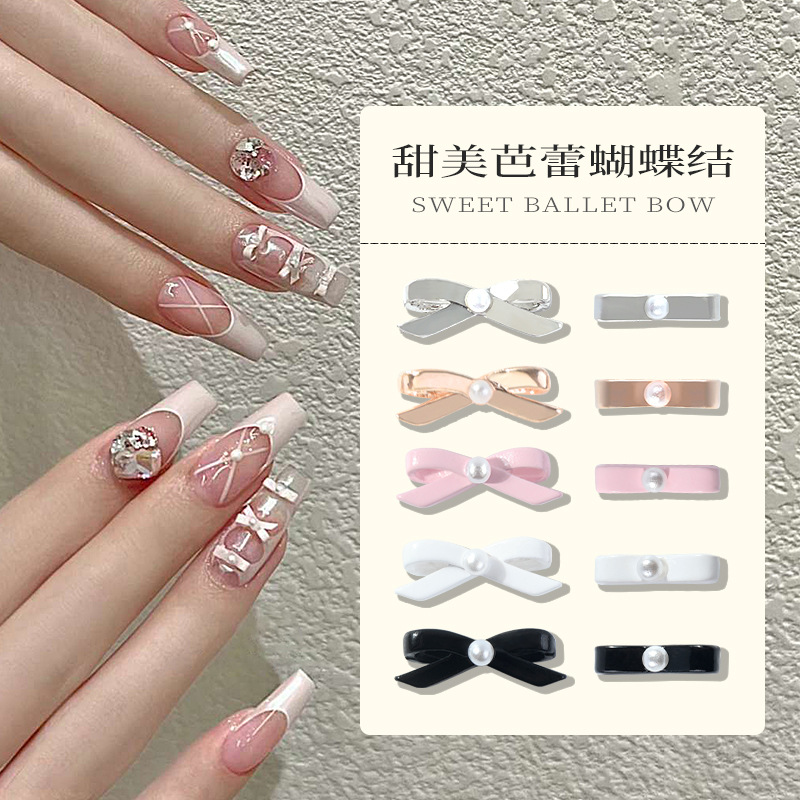 ネイルアクセサリー立体バレエ靴蝶結びリボン真珠合金爪アクセサリーアクセサリー卸売り