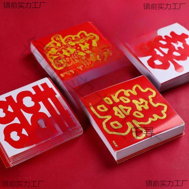 井戸の蓋の赤い紙の階段の喜字は結婚します。
