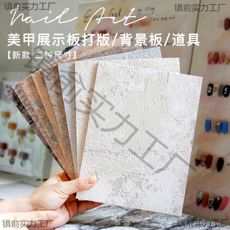 ネイルアートの背景板の作品の撮影道具は甲を着て版の色板を打って形の木質の木目の日本風の展示板を打ちます。
