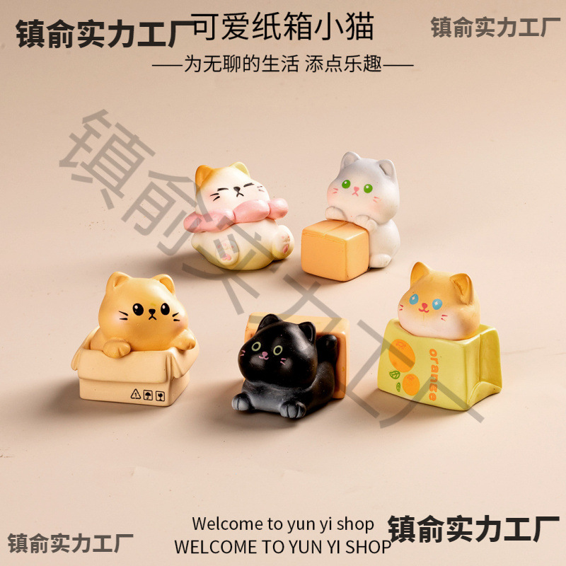 ✅微景観置物装飾樹脂工芸品デスクトップ小置物漫画人形車載段ボール箱子猫置物