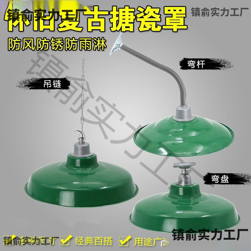 屋外防雨レトロ模造エナメルランプカバー工鉱ランプカバー道路曲げランプ軍グリーンシャンデリア工場