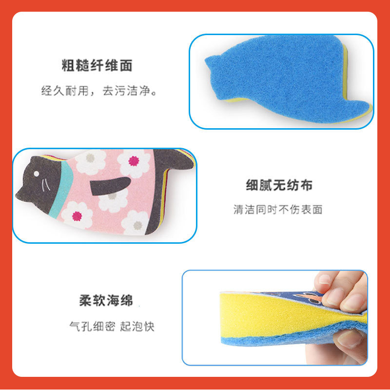 ✅ 日本製キッチン掃除食器洗いスポンジ座り猫かわいい漫画食器洗いたわしスポンジワイプ