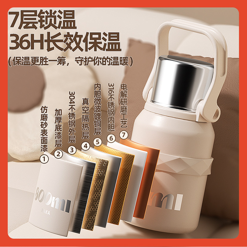 高見え断熱カップ、大容量ウォーターカップ、男女兼用茶水分離カップ、316ステンレス鋼ポータブルスポーツウォーター