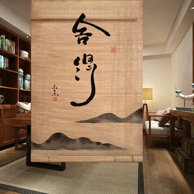 ✅ [カスタマイズ] 炭化カラープリント竹カーテンカーテンローラーブラインド背景壁中国風レトロティールーム装飾絵画パーティション