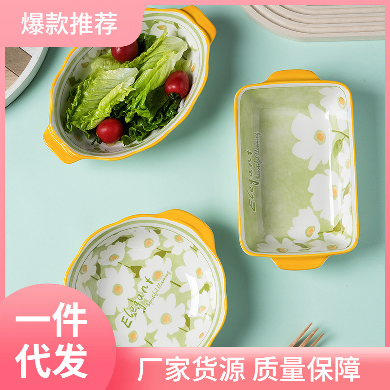 W1his高颜値新品皿ご饭焼き碗陶磁器家庭用両耳焼き皿ハンドル付オーブン専用おしゃれ
