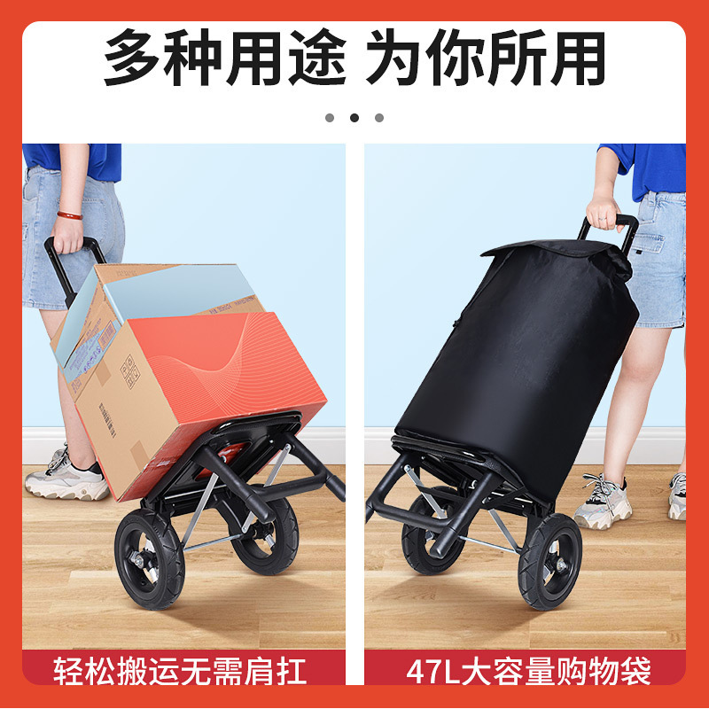 W1his易牌トレーラー折り畳み型トロリー家庭用買い物買い物用トロリートロリー屋外大型ホイール