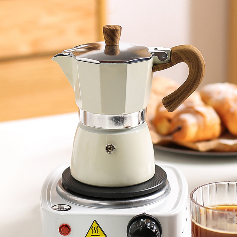 オフィスの家庭用モカ壺のイタリア式モカのコーヒーポットはコーヒーを煮ます。