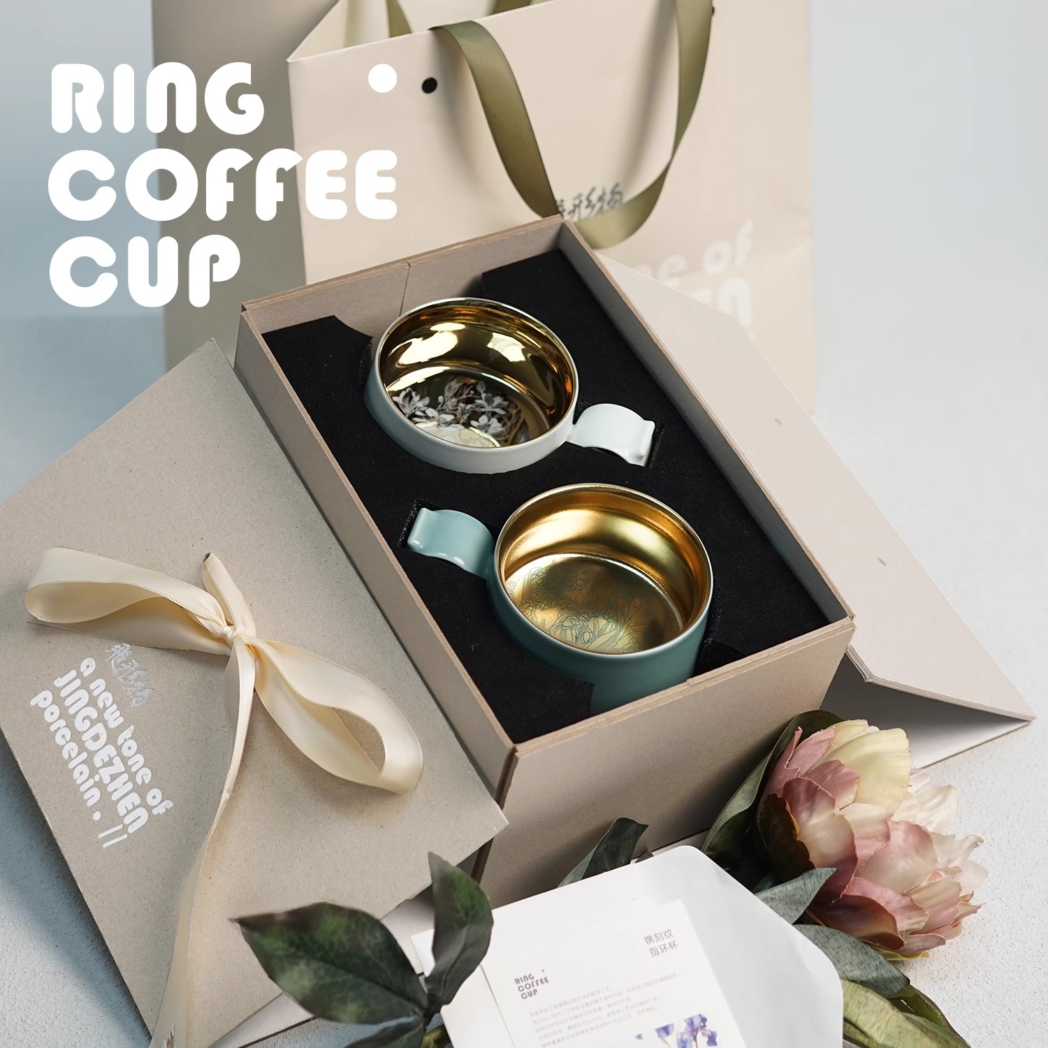 リングコーヒー ペアカップ ギフトボックス カップルカップ 新築祝い 結婚祝い ギフト ペアセット 景徳鎮