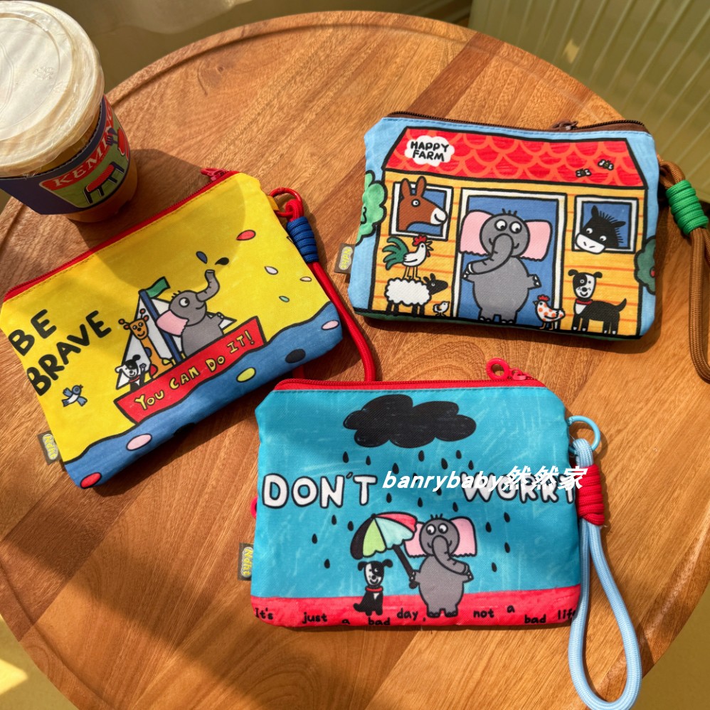 かわいい漫画の象の三層ジッパー収納袋旅行ポータブル ID バッグ多機能カードバッグ化粧品袋