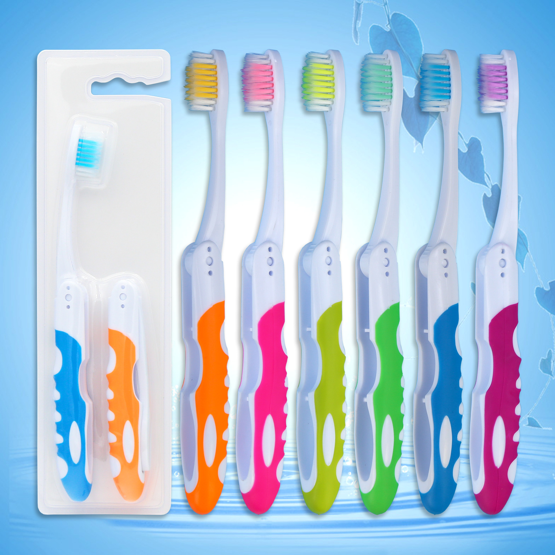 折り畳み式の歯ブラシの二本は携帯式で折り畳み可能な旅行カップルの歯ブラシの柔らかい毛の個人の箱の卸売りで郵送します。