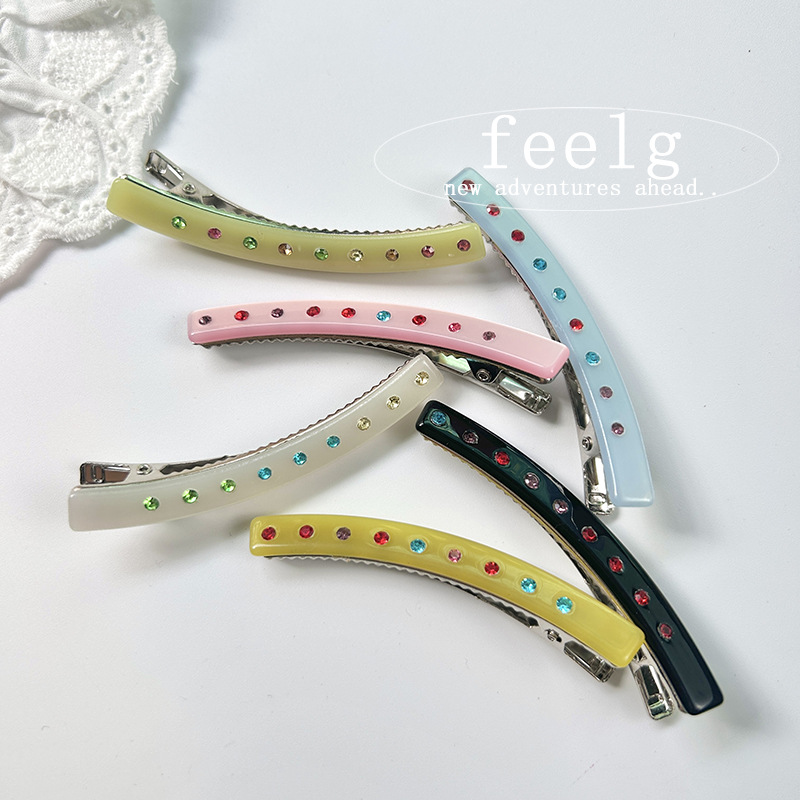 韓国のキャンディーカラーの透明なロングワンラインカモノハシクリップ、光沢のある前髪サイドクリップ、ハイエンド、多用途、新しいカラフルなスタイル