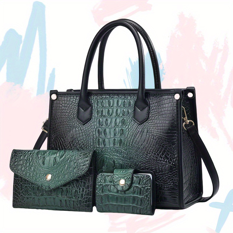 2025年新作クロスボーダードロップシッピング3点セットクロコダイル柄ハンドバッグエレガントでロマンチックなクロスボーダー