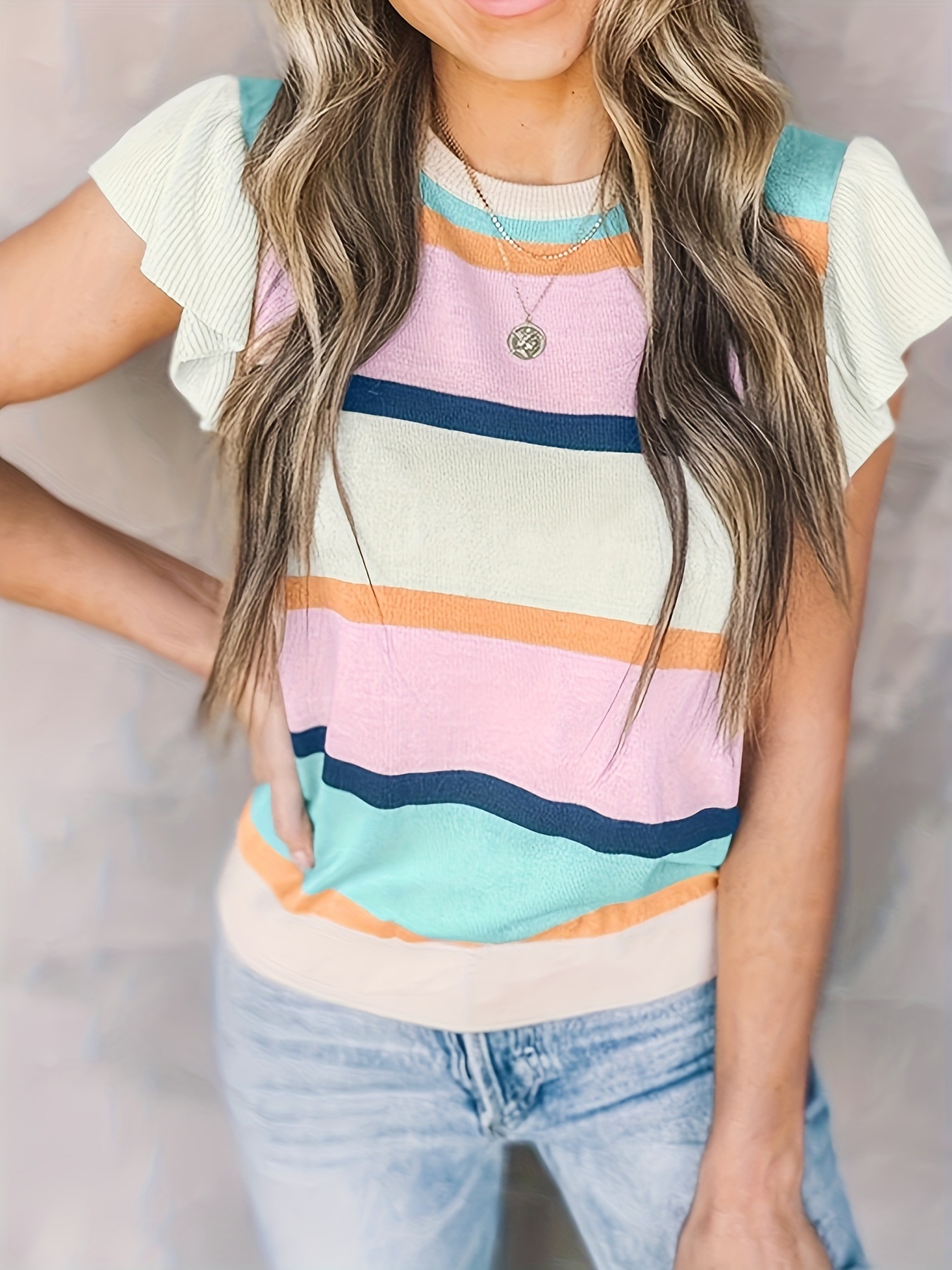 2025年新作ヨーロッパとアメリカのかわいいマルチカラーストライプカラーブロックレディースクロスボーダードロップシッピング