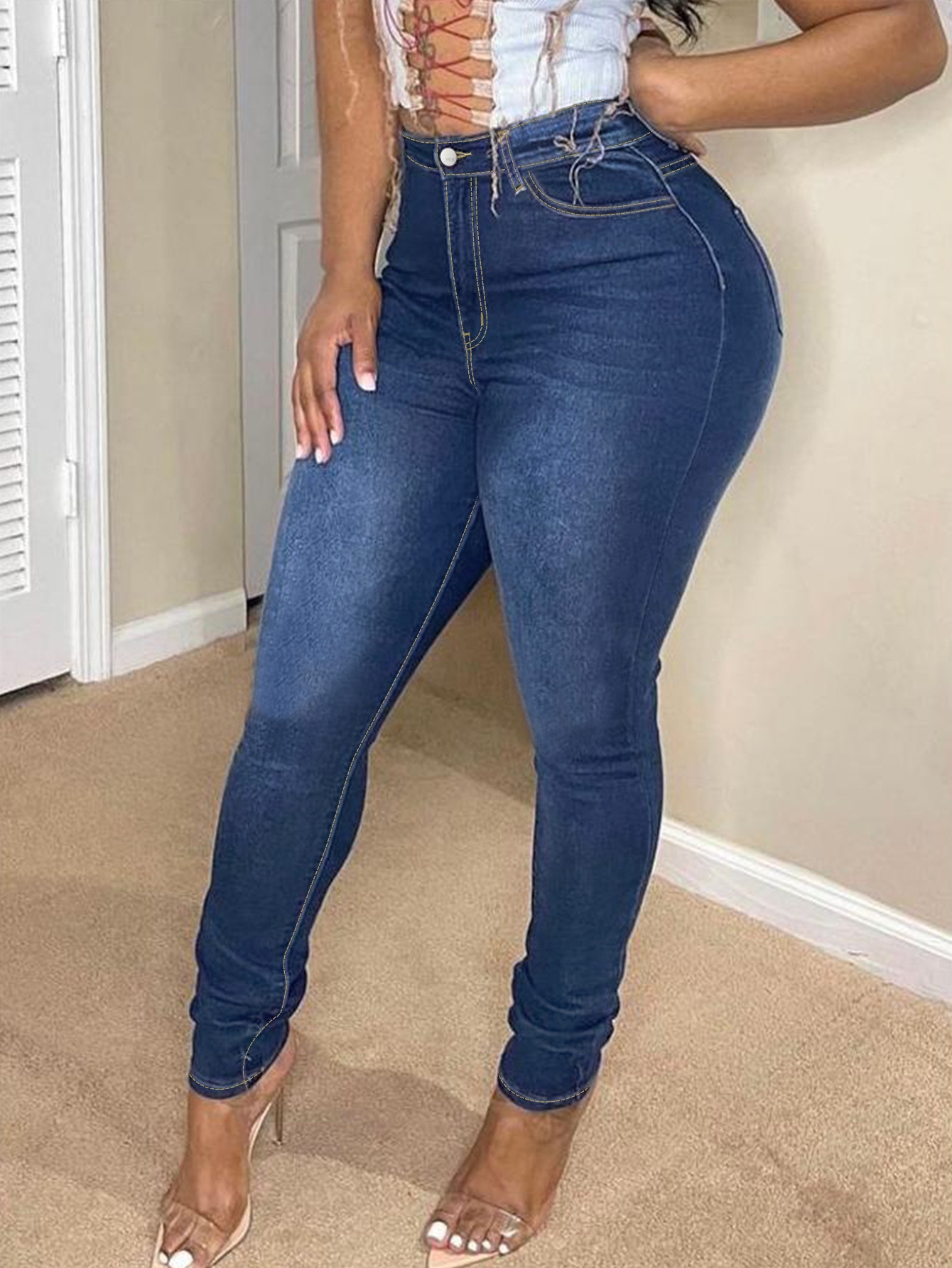 2025 クロスボーダー新ヨーロッパとアメリカの大きいサイズの女性のスキニージーンズベーシックスタイルカジュアルジーンズ