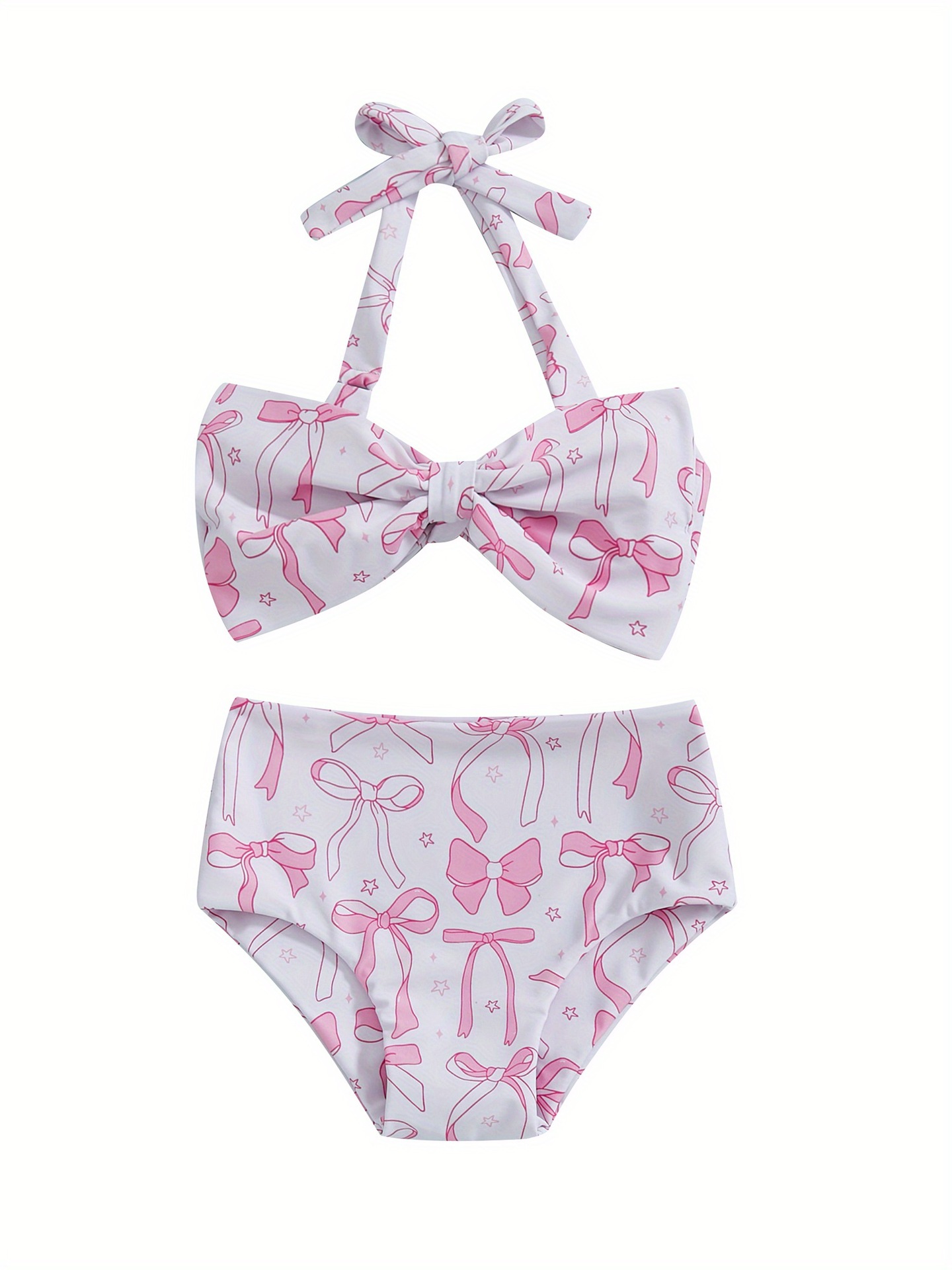2025 新しいクロスボーダーヨーロッパとアメリカの子供と女の子の 2 ピース水着夏のリボンプリントバックレスカラー