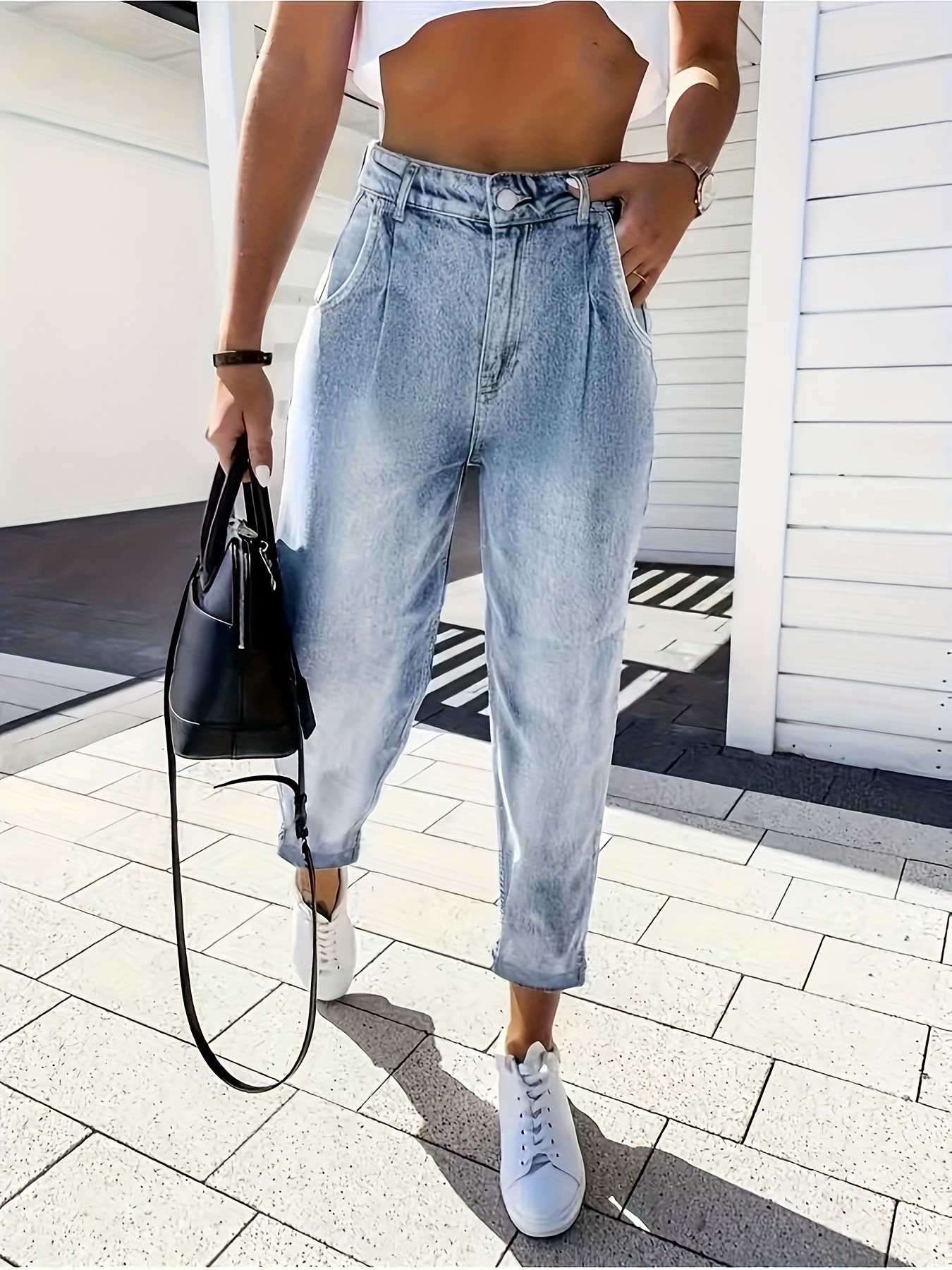 2025 新しいヨーロッパとアメリカのルーズなライトカラーの女性のハイウエスト ストレート ジーンズの国境を越えたドロップシッピング