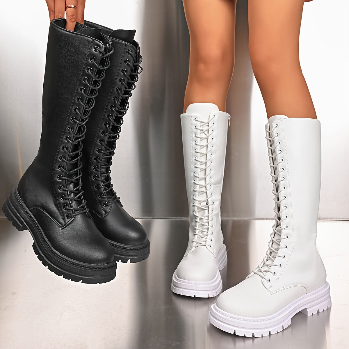 2025年新作ヨーロッパとアメリカの厚い模造レザーミッドカーフナイトブーツのクロスボーダー配送