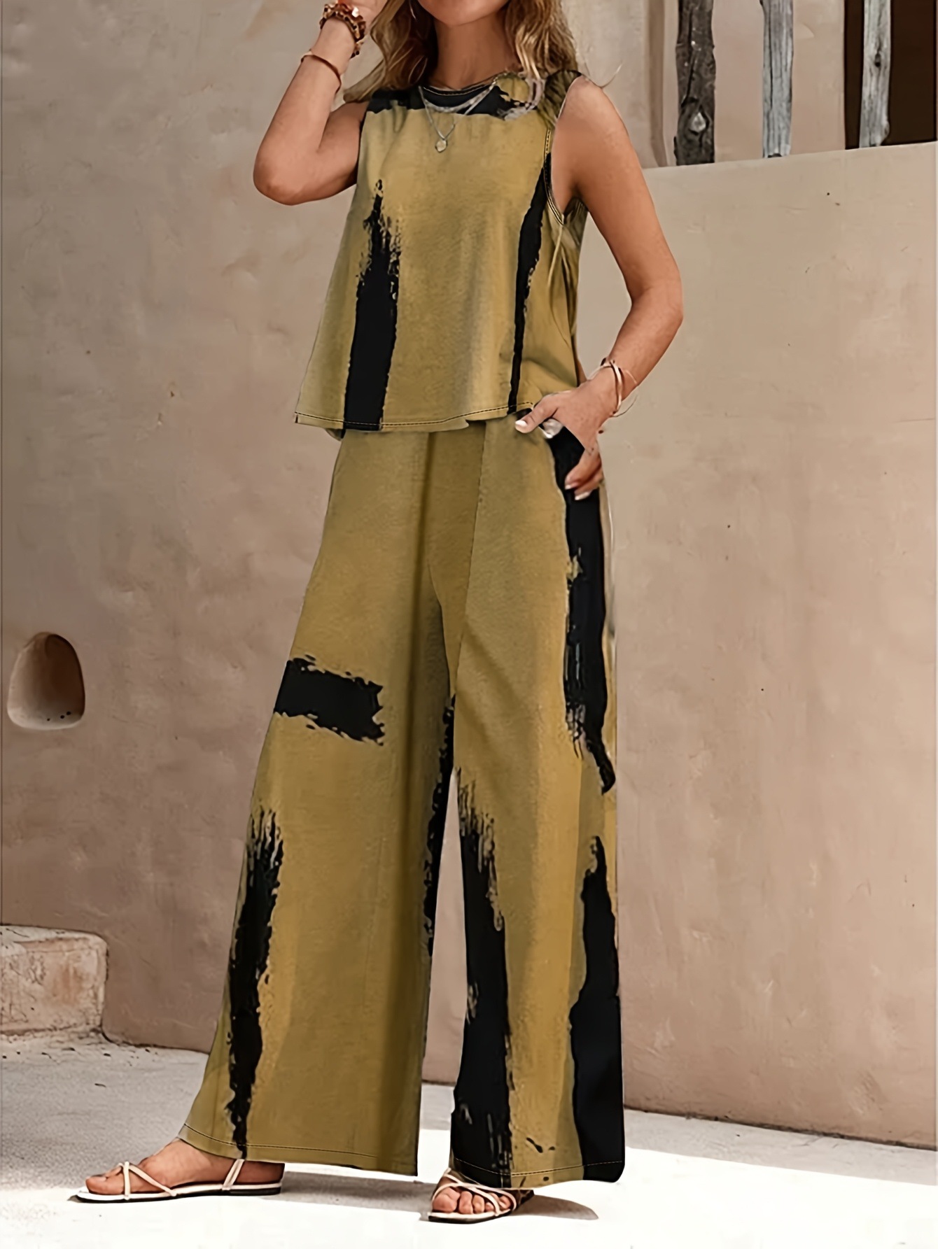 2025 新しいヨーロッパとアメリカの夏と春のツーピースカジュアル無地スプライシングパンツクロスボーダードロップシッピング