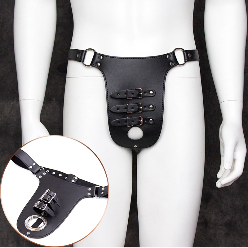 セクシーな皮のズボンの男性はペニスの鉄の環の貞操を使って、陽具を持って縛って下着を縛ってズボンの成人の皮革のズボンを着ます。