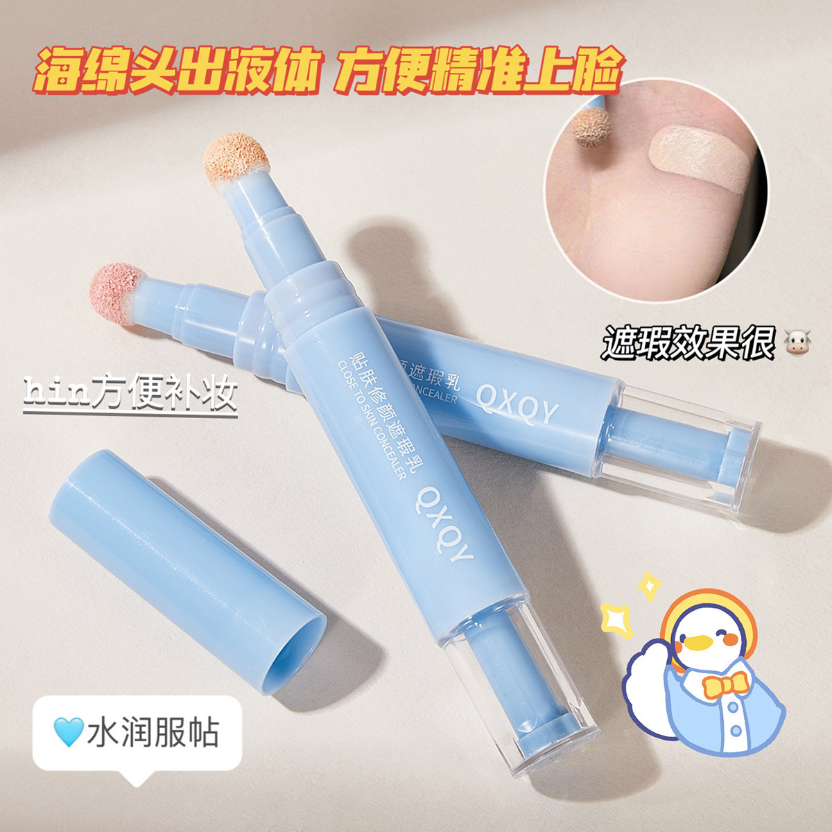 QXQY 肌にフィットするコンシーラー、自然に明るく保湿するフェイクメイクアップシャドウコンシーラースポンジヘッドファンデーションコンシーラー
