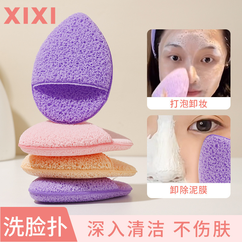 xixi 手袋型洗顔スポンジ、水に濡れると大きくなる、柔らかく肌に優しいメイク落としスポンジ、洗顔スポンジ、ストラップ付き