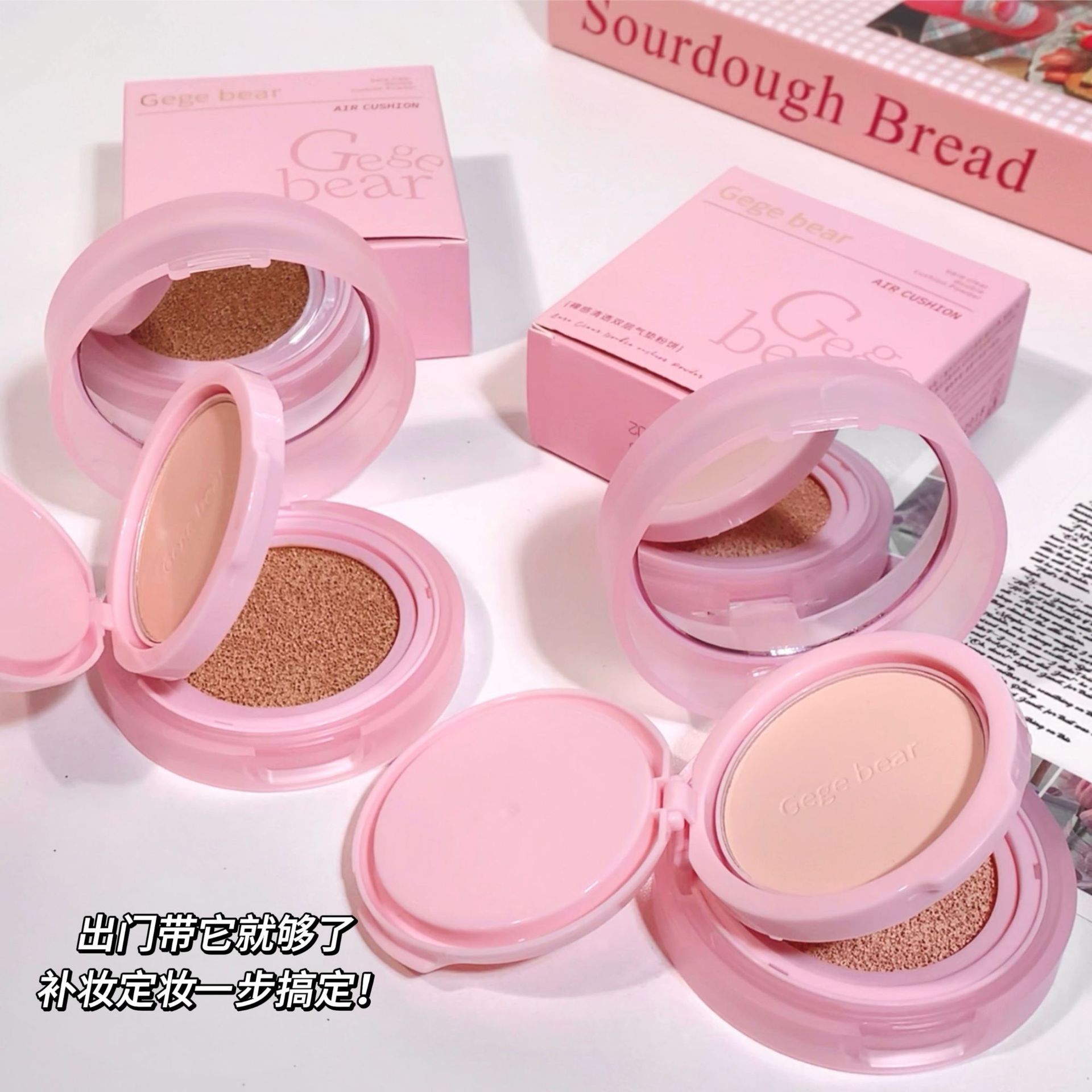Gege bearゴゴ熊糸柔潤彩修顔クッション化粧透亮自然不易粉ファンデーションBB