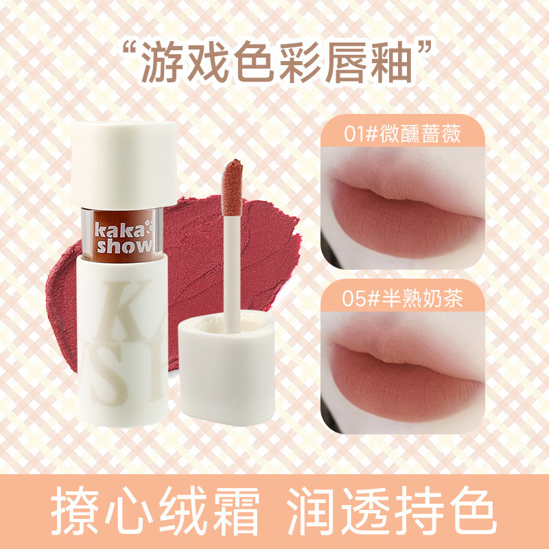 カクショーゲームの色の唇の釉薬のシルクのつや消しの口紅の霧の顔は杯をつけにくいです。