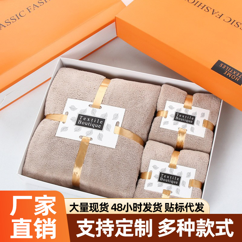 純綿ギフトタオル3点セット、コーマ綿バスタオル、ロゴ刺繍入りギフトボックス入りタオルセット、カスタムメイド越境タオルセット
