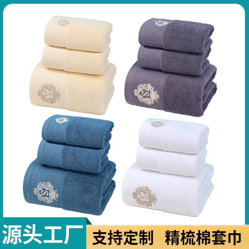 卸売り綿タオルバスタオルセット精櫛綿バスタオル三点セット吸水タオルプレゼント無地対外貿易バスタオル