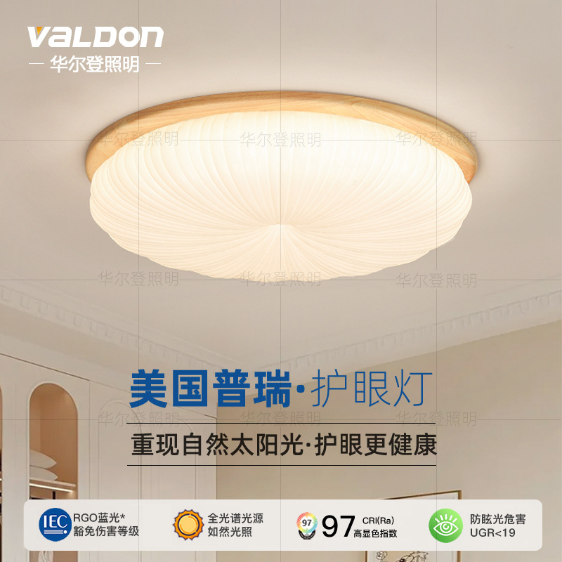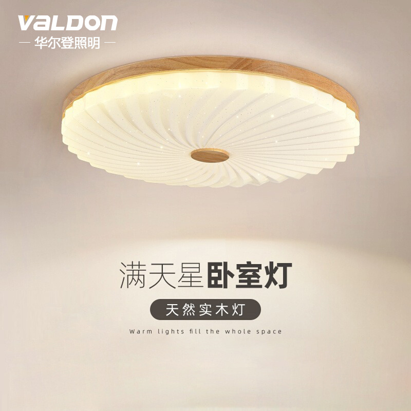Led天井灯寝室超薄型シンプル日本式原木客間灯北欧円形普瑞全スペクトル保護灯