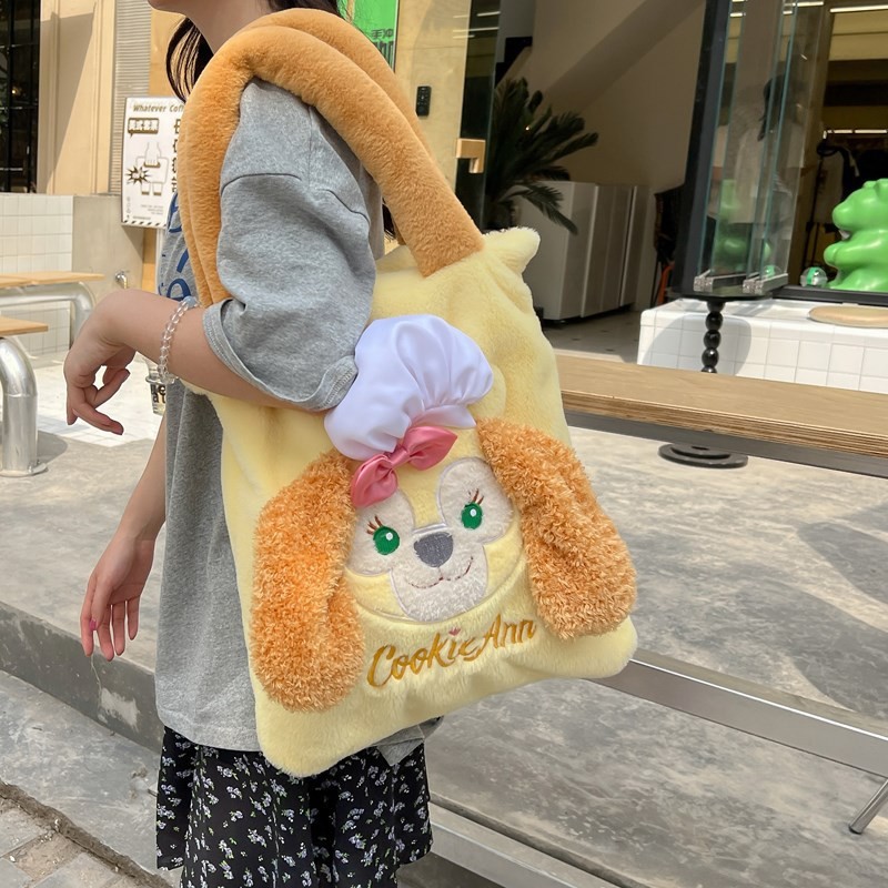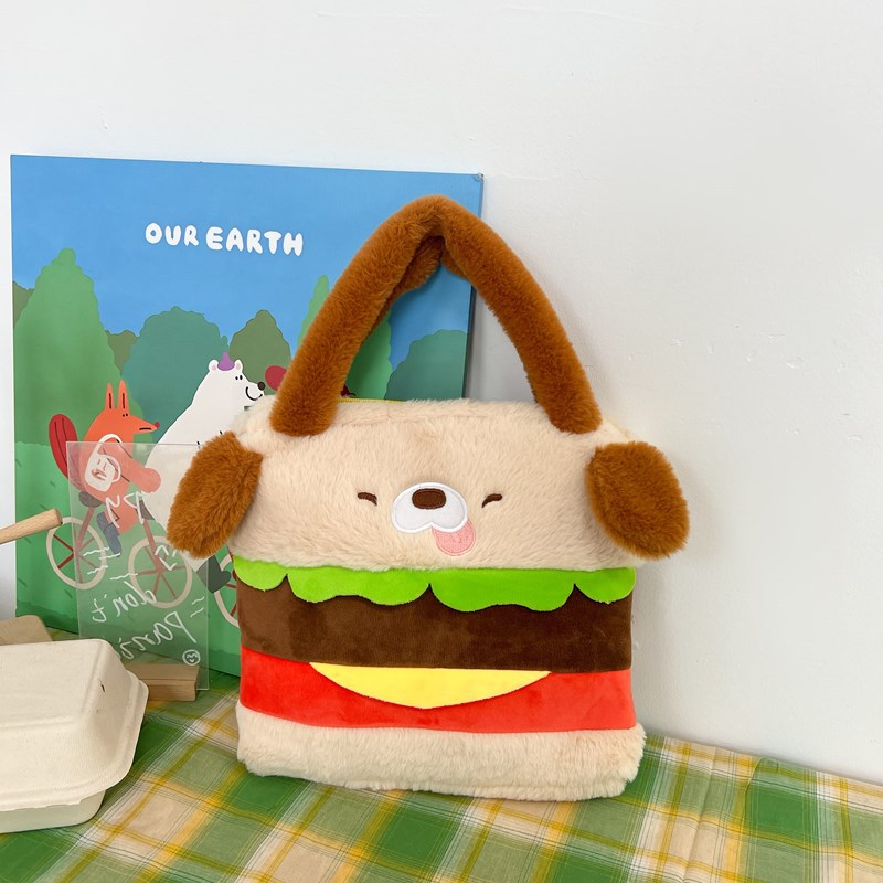 ハンバーグの子犬のぬいぐるみのハンドバッグ2024の新しいかわいい毛のふわふわしたバッグのショルダーバッグのプレゼント