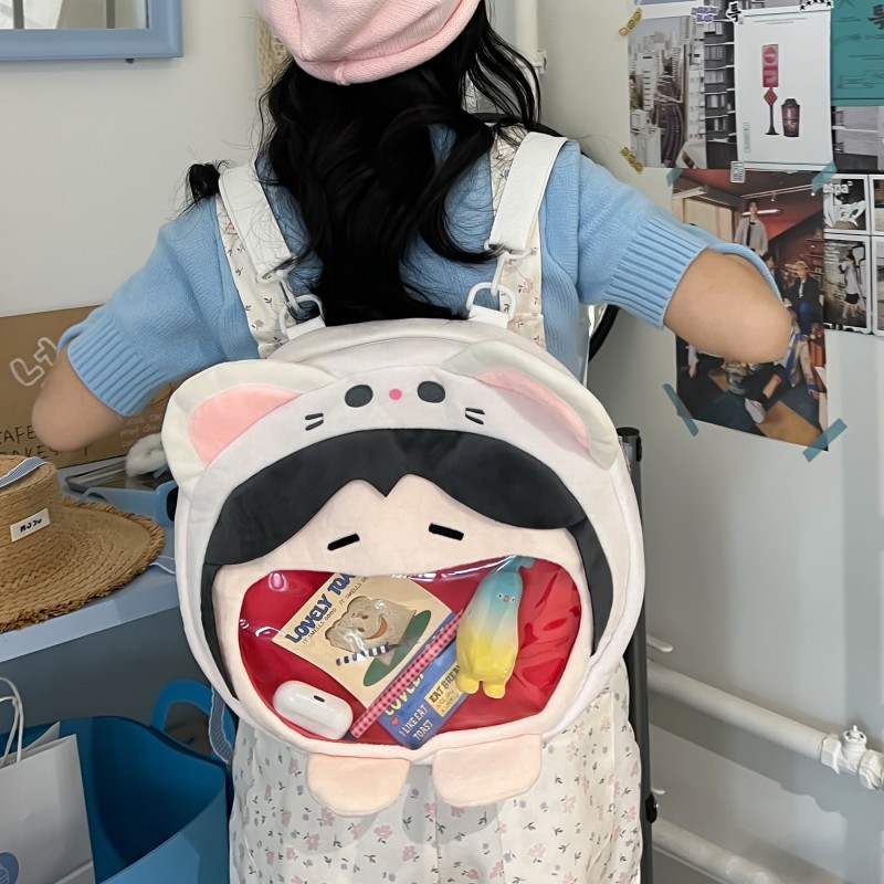 かわいいやつらやつねこちゃんふわふわ痛バッグ大容量収納バッグ2024年新作個性派漫画笑顔リュックサック