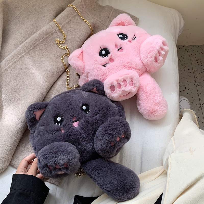 醜い萌え人形の猫のぬいぐるみが可愛いピンクの少女のショルダーバッグです。