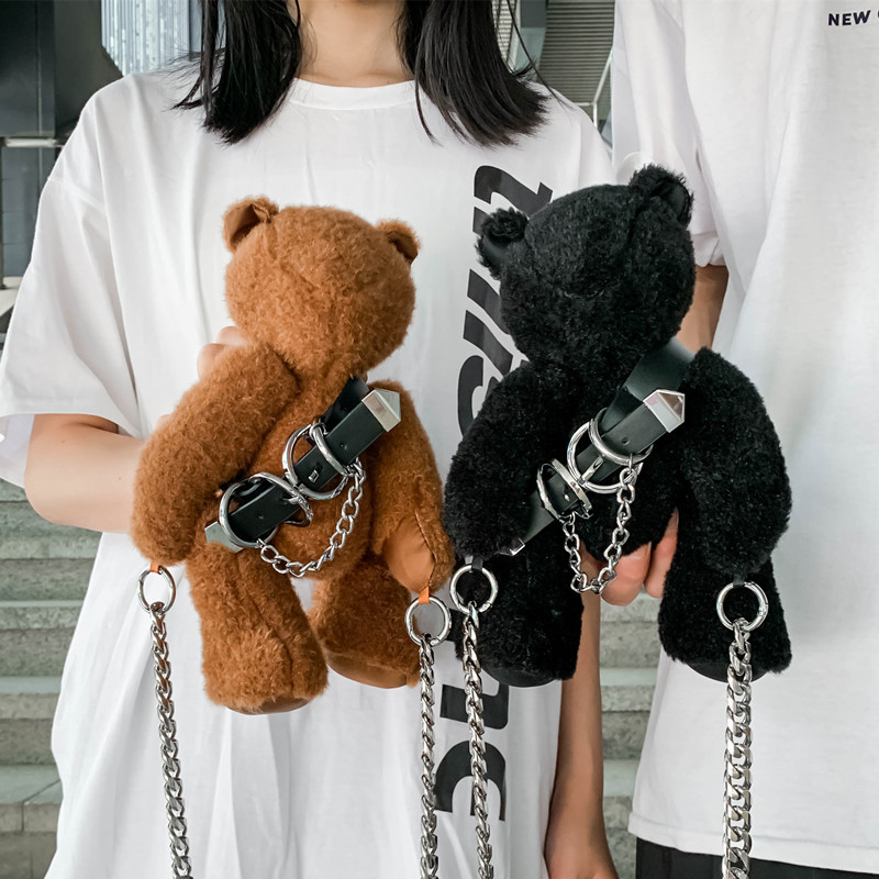 日系原宿街頭個性人形ぬいぐるみぬいぐるみバッグファッションチェーン暴力熊シングルショルダーバッグ