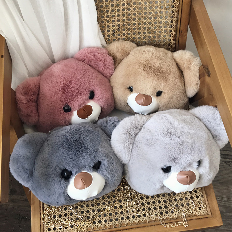 熊の頭のぬいぐるみの包みの女性の新型のins潮のファッションのチェーンの斜めな包みの学生の個性の肩の漫画のおもちゃの包み